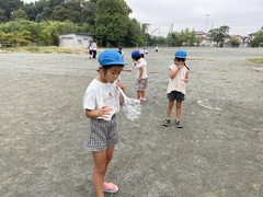 生活科の学習の一環で水遊びとシャボン玉をしました。短い時間でしたが、楽しんでいる様子が見られました。