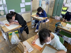 1日(木)から給食が始まります。夏休みが終わり最初の給食や午後の授業も頑張っていました。