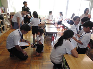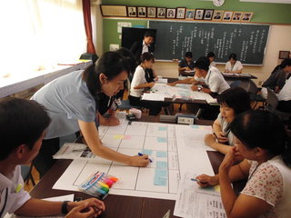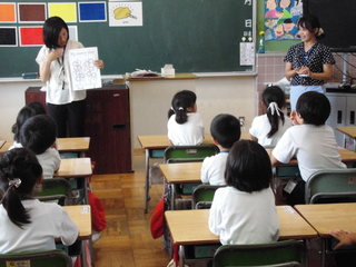 9月10日(火)今年度第3回目の英語の授業研究会を実施しました。1年生の授業を公開し、羽生市教育委員会の先生を指導者として、お招きしてご指導をいただきました。「Colors」を単元として、1年生の子どもたちが、好きな色を英語を使って紹介する学習を進めました。子どもたち同士だけでなく、参観に来ている先生にも声をかけ紹介することができました。授業の後、職員で本日の授業についてグループごとに協議をして、授業の進め方について研究を深めました。