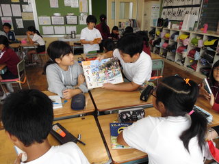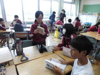 10月11日(金)の朝の活動は、ビブリオタイムでした。本校では、学力向上の取組の一つとして、読書活動の推進、地域と一体となった川柳づくりに取り組んでいます。読書活動の推進では、日頃子どもたちが読んだ本の紹介をするビブリオタイムを設定しています。この発表会は、表現力の向上のねらいもあります。グループごとに読んだ本を紹介し、さらにグループで読んでみたい本に選ばれた代表児童が学級全体で発表します。本日は、その学級のチャンプ本を選ぶ活動をしました。今後、低中高学年ごとのブロック別、さらに学校全体でのビブリオタイムへと発展していきます。