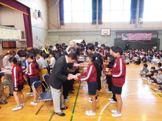 10月26日(土)日頃お世話になっています地域の皆様をお招きしての「感謝の会」及び土曜授業参観を実施しました。感謝の会では、様々な形でご支援いただいています地域の皆様をお招きして、歌を披露したりプレゼントを渡したりして、感謝の気持ちを伝えました。また、浦和学院高等学校コーラス部の生徒さんにもご来校いただき、見事な歌を披露していただきました。