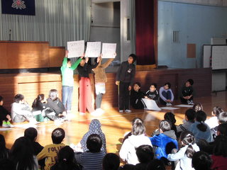 始業式の後、児童会から「冬休みの過ごし方」について、保健委員会からの「冬休みの健康な過ごし方」について発表がありました。最後には、「お家の約束さわやかリーダー」「読書賞」「岩丸くん優秀賞」さらに地域の皆様が審査員となって選ばれた「川柳」の優秀作品の表彰が行われました。