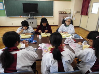 英語教育の研究推進に関わり、授業ではある程度学習している英語を子どもたちは話せるのに、授業以外になると授業で学んだことを活かして話せないことが課題でした。そこで授業だけでなく、日常からさらに英語に親しませることを課題に、3学期から放送委員による朝や昼の放送を英語を使って放送しています。また、給食時間では、高学年の子供たちがグループごとにALTと一緒に給食をとりながら、英吾によるフリートークを行っています。