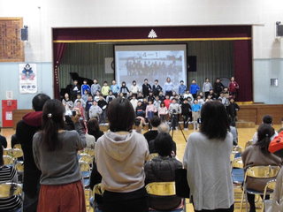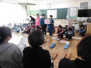2月21日(金)学年末PTA学習参観、懇談会かありました。たくさんの保護者の皆様に、ご来校をいただきまして、大変ありがとうございました。どこの学級も1年間の思い出や成長を発表する授業公開でした。4年生は、1/2成人式ということで、体育館で、今までの成長に感謝の気持ちを伝えていました。他に卒業を祝うケーキ作りを親子で楽しんでいたり、学んだ英語を使って買い物ごっこをしていました。5年生では、今までの思い出を劇などで表現し、川柳にまとめて発表していました。