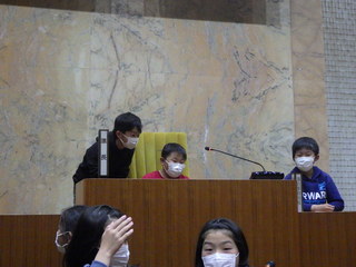 羽生市の様々なことについて、話し合われる議場を見学し、羽生市民の一員であるという自覚を持ったようです。
