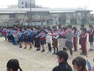 6年生のお兄さん、お姉さんに感謝の気持ちを学年ごとに伝えました。
