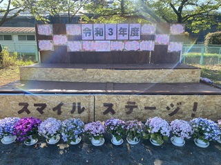 校庭の東側に「IWASE スマイル ステージ」が完成しました。