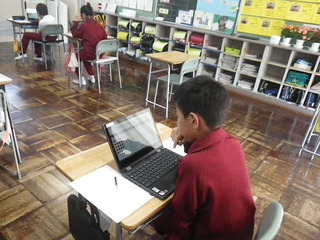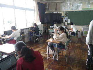 「埼玉県学力・学習状況調査」を昨年度より一人一台のタブレット端末で実施しています。この調査では、子供達の「学力の伸び」を測ることができる教科に関する調査、学習に対する意欲や学習方法、さらに家庭での生活習慣等に関する質問紙調査を行っています。4年生から6年生が、国語と算数、質問紙に挑戦しました。子供達は、タブレットの操作やパソコンならではの問題に苦戦しながらも、最後まで粘り強く取り組んでいました。