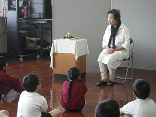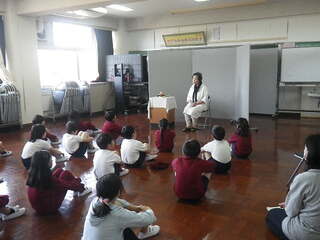 3年生が、朝の読書タイムに、お話会ポケットの方に読み聞かせをしていただきました。お話の世界へ入るため、ロウソクを灯します。最後にお誕生月の児童が願いをこめて、ロウソクにフッと息を吹きかけ、お話の世界から戻ります。今年度も、様々なお話を楽しみにしています。どうぞよろしくお願いします。