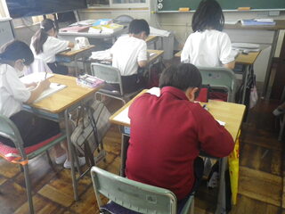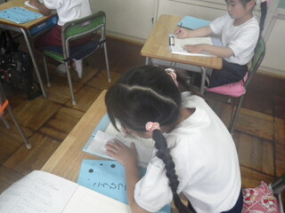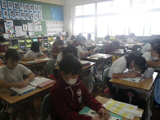 全校で校内競書会を行いました。これまで積み重ねてきた練習の成果を発揮すべく、お手本を見ながら、一画一画ていねいに書きました。高学年では、一枚の作品を仕上げるのに、集中して45分かけて書き上げている姿も見られました。