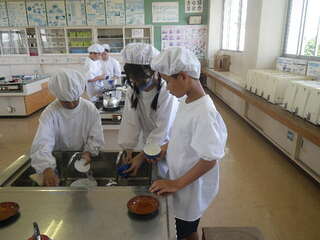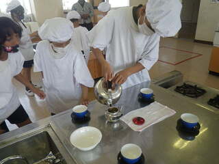 家庭科の学習で、おいしいお茶の入れ方を学習しました。茶の種類や量、お湯の温度などに気を付けて入れることができました。食器やガスコンロの安全で衛生的な使い方についても学びました。家族や自分の好みのお茶や入れ方を見つけ、お茶の時間を楽しんでみましょう。
