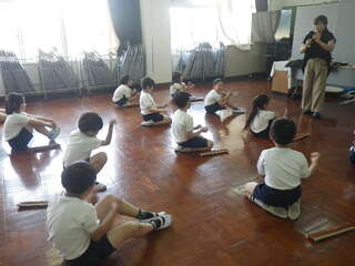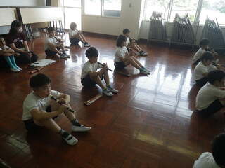 東京リコーダー協会の方を講師に迎え、リコーダー講習会を実施しました。今日は、8種類のリコーダーを見せていただきました。リコーダーは、長いものは、講師の方の背を超えるくらいでした。長ければ長いほど、音は低くなります。知っている曲を演奏していただき、子供達は思わず踊り出してしまいました。また、リコーダーを演奏するときの、吹き方や指の押さえ方を学びました。教わったこと活かして、いろいろな曲の演奏にチャレンジしていきます。