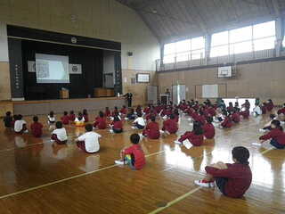 市内陸上記録会の前日に、全校児童で6年生を応援する会を開きました。6年生のみなさんが、記録会で今までの練習の成果を発揮できるよう、川俣小学校のみんなで応援しました。