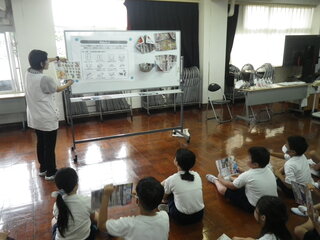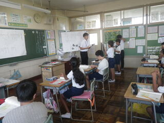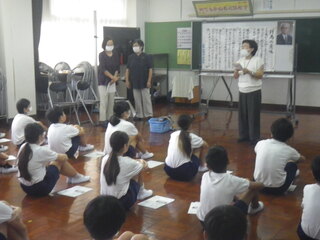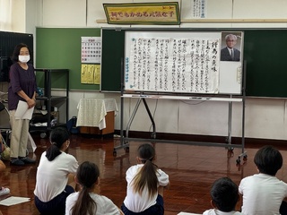 本校の校歌の作詞をした宮澤章二の作品について知る出前講座を実施しました。「行為の意味」の詩を説明していただき、朗読をしました。「あなたの〈こころ〉はどんな形ですか」から始まるこの詩は、5・6年生の心にも染み渡り、とても有意義な時間となりました。国語では音読学習を行い、すてきな言葉やお気に入りの詩を見つけています。