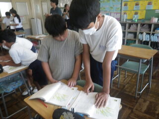 5年生が「われは草なり」を読み、詩の繰り返しのリズムの心地よさや言葉から伝わるイメージを感じ取りました。子供達は、グループで読んだり個人で読んだりしながら、一生懸命生きようとする草の様子を感じ取っていました。