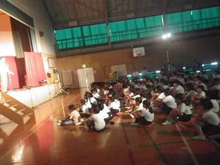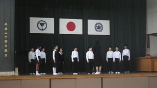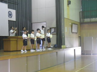 5年生が、本番の衣装を身にまとい、全校児童の前で合唱を披露しました。指揮者である担任の先生をよく見て、一つ一つの言葉を丁寧に歌い、歌声を体育館に響かせていました。本番も頑張ります。