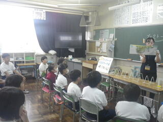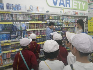 2年生が、学校の近くにあるドラックストアへ町探検に行きました。どのような品物があるのか、お店の人はどのような仕事をしているのか、いろいろな質問に答えていただきました。これからも、学校の回りの様子について調べていきます。