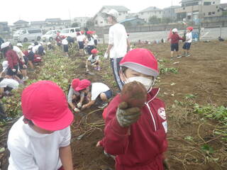 1・2年生が学校ファームでさつまいもほりをしました。地域の方がお世話をしてくださって伸び伸び育ったさつまいもは、子供達の顔より大きいものがあり、子供達はびっくりしていました。