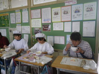 今日は、給食センターの栄養教諭をお招きして、保護者の方々の給食試食会がありました。どのように給食を作っているのかも映像で様子を見せていただきました。また、好き嫌いなく食べれられるよう 声掛けをすることの大切さを教えていただきました。