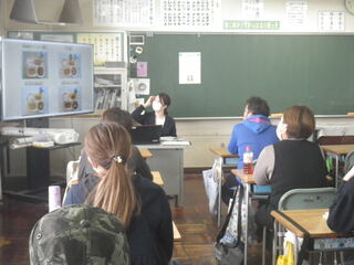 1・4・6年生が、道徳の学習を行い、多くの参観者がいる中、子供達は課題について一生懸命考えていました。自分の気持ちの弱いところに目を向けたり、自分の人やものの見方・考え方に気付いたりする時間となりました。