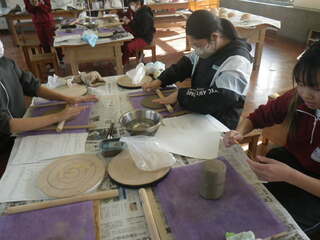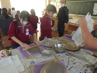 6年生が、陶芸教室を行いました。3時間、集中して、粘土に向かい合って作品づくりをしました。細かな模様や飾りをつけ、丁寧に仕上げていました。どのような色合いになるのか、出来上がりが楽しみです。