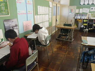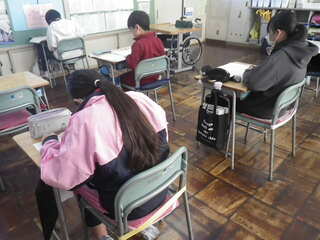 今まで学習したことが身に付いているか、子供達は国語と算数の問題に挑戦しました。難しい問題にも最後まであきらめず、時間いっぱい取り組んでいました。