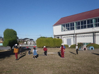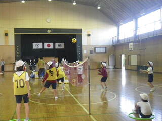 朝の活動の時間に、縦割り班のなかよしグループで考えた遊びを行いました。6年生のリーダーを中心に、鬼ごっこやタイヤ跳びじゃんけん、だるまさんがころんだ、長縄などをして遊びました。