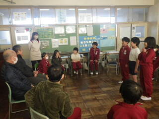 3年生が、地域の方に教わって育てたバケツ稲の収穫に感謝をする「お米パーティ」を行いました。講師の方をお招きし、お米に関するクイズをしたりおにぎりにして食べたりして、講師の方へ感謝の気持ちを伝えました。