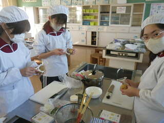 6年生は、家庭科の学習で食品の組み合わせや栄養バランスを考えた献立を作りました。今日は、一人一人が考えた献立のおかずを手際よく作りました。調理実習の後、子供達は、休み中にまた作ってみたいという感想を述べていました。