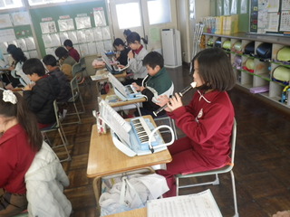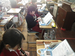 4年生は、鍵盤ハーモニカやリコーダーなどを使った合奏にチャレンジしています。鉄腕アトムの曲を各パートに分かれて練習しました。これから練習を重ねて皆で合奏するのが楽しみです。