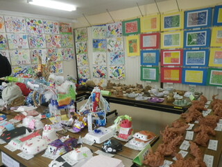 児童の皆さんの絵画や工作を川俣公民館文化展に出品しました。地域の方や保護者の方などたくさんの方に作品を見ていただきました。図書の紹介コーナーは図書委員会の児童がポップを作成しました。川俣公民館では、本も借りることができます。ぜひ、足を運んでみてください。