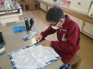5年生は、ミシンの直線縫いに挑戦しています。両端は返し縫いをして、糸がほつれないようにしていました。もうすぐ自分で作製したランチョンマットが完成します。出来上がりが待ち遠しいです。