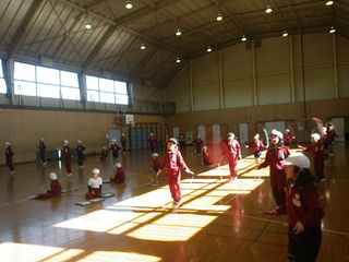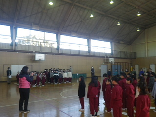 3年生から6年生までの短縄跳び記録会が行われ、時間跳びでは、3分間跳び続けることができた児童に大きな拍手が起きました。休み時間にも縄跳びの練習をしている成果が表れていました。