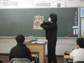 実際にがんと闘い、いきいきと毎日を過ごし、各学校に講演会を行っている講師の方に、病気と共に生きることや将来のことについてお話をしていただきました。もうすぐ卒業を迎える6年生は、体験談を聞き、自分の将来についてじっくり考えるきっかけとなりました。
