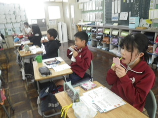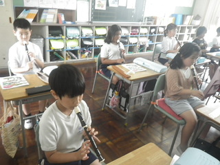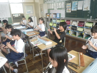 3年生が、シとラの音の練習をしています。風船を吹くように、優しく「トゥー」とリコーダーに息を吹き込むと、きれいな音が出るようになりました。練習すればするほど上手くなっていきます。いろいろな曲を演奏したくなってきました。