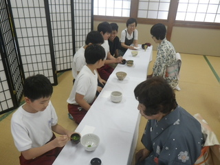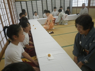6年生が、茶道のおもてなしの心や日本の文化の素晴らしさを学びました。昔からお茶は薬として飲んでいたことを知り、朝起きてお茶を飲んで、元気に登校したいと感想を述べていました。