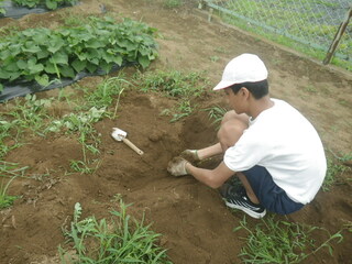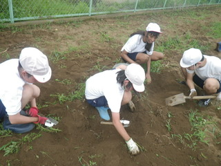 6年生が、地域の方が育ててくださったじゃがいもを掘りました。手のひらくらいの大きさのじゃがいもが出てきて大喜びです。全学年で