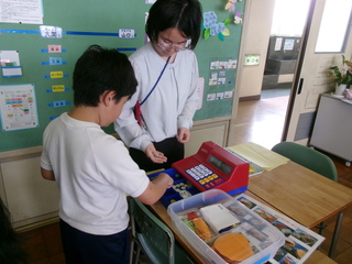 わかば学級の児童が、買い物をするという課題で、一人一人がめあてをもって算数の学習をしました。1000円をおこづかいとして、見積もりをしてどの商品を買うことができるか考えながら、楽しく学習することができました。