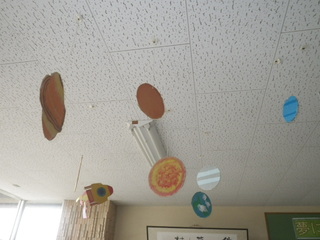 6年生が、いつもの学校を、来校した人が楽しくなるように変身させました。これまでに使ってきた段ボールなどの材料を組み合わせ、場所に合わせて面白い世界をつくり上げました。