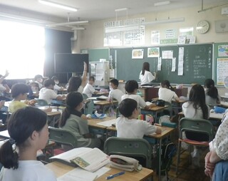給食センターの栄養教諭をお招きし、5年生が朝食のパワーを探りました。朝食は、私達の体とお腹と頭(脳)の3つのスイッチをいれてくれる重要なものだとわかりました。これから、自分達でもつくることができる朝食について調べていきます。