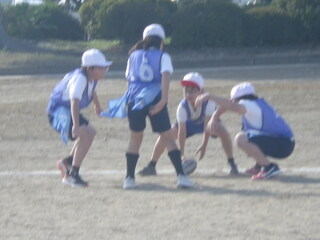 4年生が、フラッグフットボールを行っています。子供達は、自分のチームのよさを活かした作戦を立て実行できるよう練習をしています。得点が入ると、子供達は、ハイタッチをしたりいいプレーだったことを褒め合ったりしていました。
