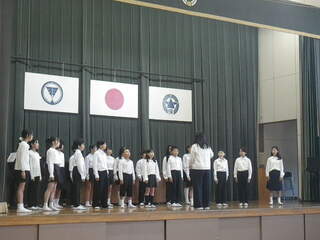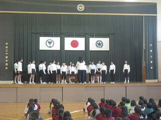 市内音楽会に参加する5年生が、全校児童の前で歌声を披露しました。緊張をしながらも、今まで練習してきた成果を発揮し、きれいな声を体育館内に響かせました。このあとも本番に向けて練習をし、歌声に磨きをかけています。