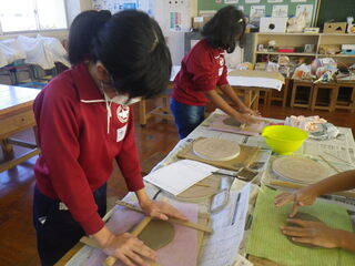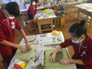 6年生が、陶芸に挑戦しました。自分で作りたいものの設計図を描き、一つは、お家の方へのプレゼントとして器をつくり、もう一つは自分で表したいものをつくることにしました。指先から伝わる思いを表現することができました。