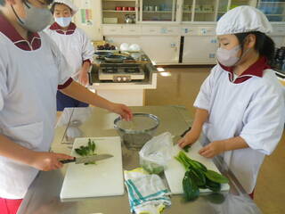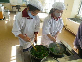 わかば・わかくさ学級の児童が学級園で育ててきた冬野菜を収穫し、野菜パーティをしました。小松菜やかぶでスープをつくり、ほうれん草は、ウインナーと一緒にソテーしました。自分達で育て、調理した新鮮な野菜はとてもおいしかったと嬉しそうに話していました。