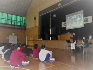 埼玉県警察非行防止指導班の「あおぞら」の方を講師にお招きし、薬物の恐ろしさについて教えていただきました。違法薬物は、一度でも使ってしまうと一生を台無しにしてしまうことを学び、使わないという強い心をもつことが大切だと気付きました。