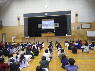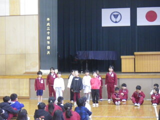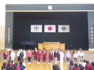 校長先生のお話では、2学期にがんばったことや成長したことを振り返りました。代表の児童2名が、2学期にめあてをもって取り組んだことや楽しかったこと、3学期の抱負を話しました。様々な行事や学習活動を通して、大きく成長した2学期でした。