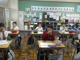 4年生が、歯の形をよく観察して、どのような働きがあるのか、自分がご飯を食べるときにはどこを使っているのかを調べました。歯の種類によって歯の磨き方も変わります。今日は、磨き残しやすい歯を発見して磨き方を練習しました。