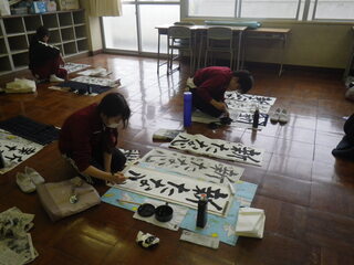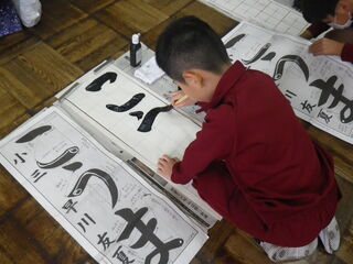 全校児童が、校内書きぞめ競書会を行いました。1・2年生は、フェルトペンを使ってお手本をよく見て大きく字を書いていました。3~6年生は、自分で気を付けるところを決めて、一画一画丁寧に書くことができました。
