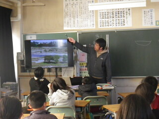 5年生が、埼玉県立川の博物館の方を講師としてお招きし、実際に川の流れを再現して調べる学習をしました。流れる水には、石や土を運んだり土地をけずったりする働きがあることがわかりました。また、私達の身近な利根川では、どのような様子になっているのかを教えていただきました。