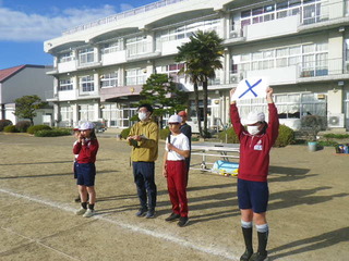 なかよし班で集まり、なかよしハイキングで実施する予定だったレクリエーションを行いました。代表委員会の児童が企画・運営し、全校しっぽ取りや〇✕クイズを行いました。なかよし班では、ボール遊びをして仲間との絆を強めました。